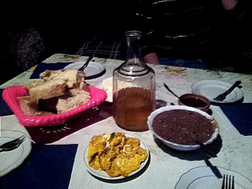 In the warm wooden building we were treated to a dinner made completely from the produce of their farm. This included cheese, bread and Georgian baked beans which was delicious.
