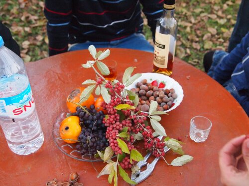 After about half an hour of this though they made us stop and eat more fruit, drink more brandy and generally attempt to cross the language barrier as much as possible. We were then invited in to another building which appeared to house the kitchen and day to day sitting and dining room. We never quite worked out how the buildings worked that they had. They appeared to have two main structures, one made of wood that they kept heated with wood burning stove where they cooked, ate and watched television and maybe some part of the family slept. The second was made of concrete and wasn’t finished at the back, this contained the sitting room they had put us in originally and it transpired at least one bedroom, from the road we had thought this would be the building where everything happened but apparently it was not.