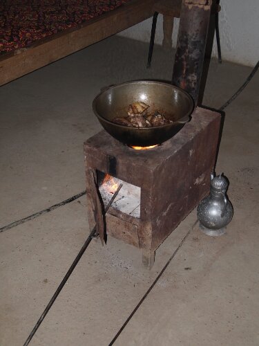 Basically it ran on what looked like a hose with gas coming through it that they had lit the end of. This they had stuck in a stove. I’m not quite sure how you turned it off and on and didn’t want to ask in case they showed me.