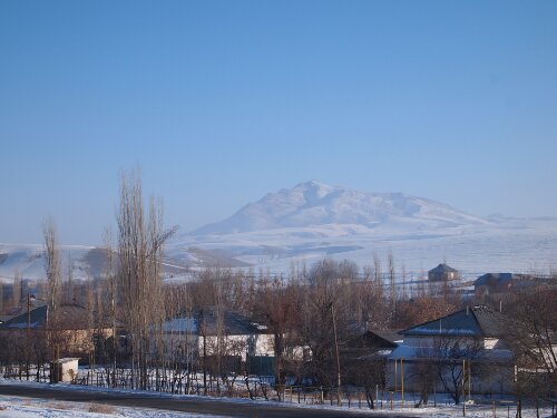 Coming out of the foothills I’d been riding in into the depression that housed Taraz I was struck by how much warmer it was. There was far less snow and even plants growing.