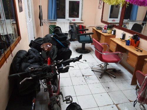 That night I slept in one of the stranger places I have done on this tour: in the office of a hair salon.