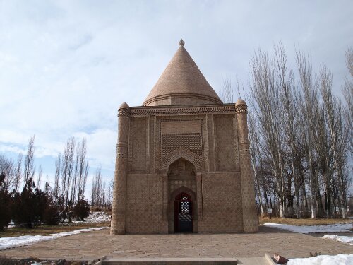 Not far out of Taraz I popped in briefly to look at the Aysha Bibi mausoleum, apparently the burial site of Kazakhstan’s answer to Romeo and Juliet: