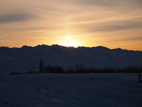 The weather since I had reached Shymkent had markedly improved in the day; with bright sunshine and almost warm temperatures. Suddenly I could see incredible mountain ranges in the middle distance: