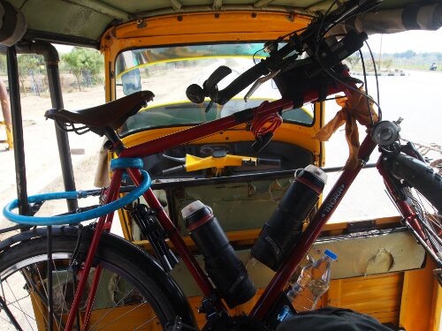 Luckily as this flat happened a couple of English speaking guys were trying to engage me in conversation from their moped so they were able to help me flag down a tuk tuk, load my bike in it with my luggage and explain to the driver I wanted to be driven to a hotel in Amoor.