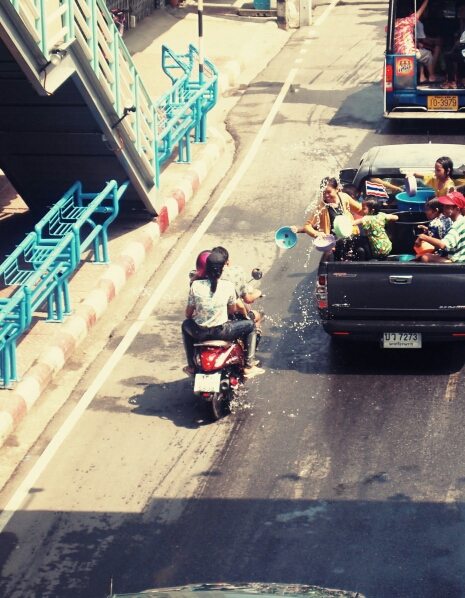 The next day it was time for Songkran and I had prepared myself after hearing quite a few stories. Apparently the most obvious tradition relating to this festival is the splashing of water on people as a blessing. I assume in the past this was a bit more staid, now it involves groups of people standing by the side of the road with huge tubs of water and splashing anyone who goes past, or shooting them with water pistols.
