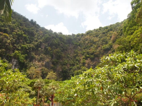 I rode off down some Thai back roads which were thankfully still of excellent quality and after asking directions a couple of times found my way to the Hot Springs. These were a bit disappointing as the water was dirty and only a couple of children were playing in them. Anyway they were hot and the last thing I wanted was hot water at that point… The setting though was beautiful as they were up against a mountain that reared cliff like up out of the ground.
