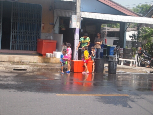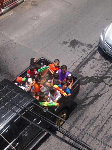 The first time I went out in the morning it was mainly children doing the splashing. By the afternoon the whole town was in on it. Hundreds of pick up trucks were driving round – these were loaded with people tooled up with water pistols and buckets and throwing water on passersby and other vehicles.