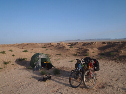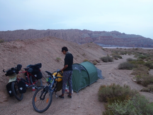 After dinner we rode on further and got back to some more deserty land where it is less pleasant but much easier to camp as there are a lot fewer people around.