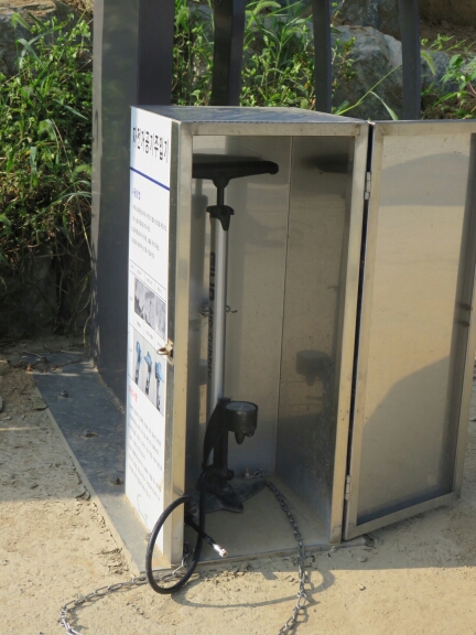 The first day was extremely pleasant and pretty easy being mostly flat and on perfect surface. Bart and I literally rocketed along. I felt like a Chinese truck thundering along the path shooting past a lot of the Korean riders out for more sedate weekend rides. I felt ridiculously over equipped for the ride, my first aid kit and even bicycle pump were redundant as there were communal ones located at intervals along the road.