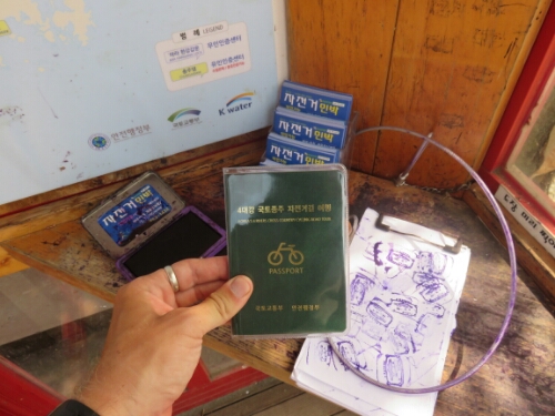 The cycle route I was taking was called the ‘Korea’s 4 Rivers Cross Country Cycling Road Tour’ and it runs from near Incheon all the way down through the country to Busan; the majority of the time it is alongside some of Korea’s many different rivers, hence the name. As part of the tour it is possible to buy a passport and get stamps at various booths on the route to prove you’ve done it. I thought it’d make a nice souvenir.