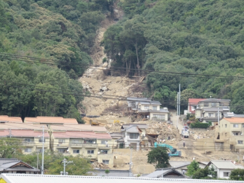 I was soon on the edge of the city and it wasn’t long before I was given a reminder of what an unfriendly country Japan can be to its inhabitants. As I rode I saw a man taking a photo seemingly at random and as I looked where his camera pointed I realised I was going straight past where the recent landslides had been. I hadn’t realised that they had happened so close to the area I had been in.
