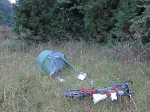 After another night sleeping in the bushes by the side of a Japanese road.