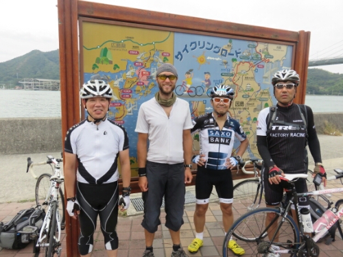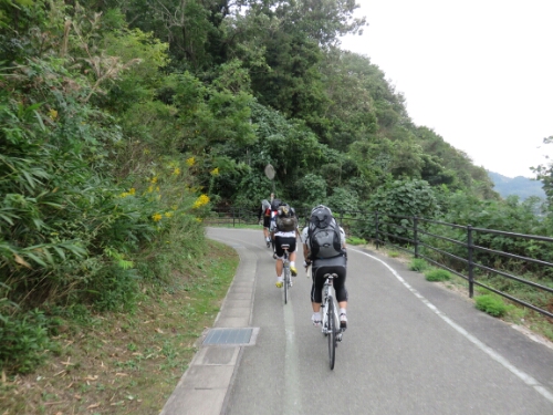 Indeed after about bridge two of seven I’d been caught up by a group of four Japanese riders pounding along on road bikes. They were going a bit faster than me but not so much faster that I couldn’t tag along in their slipstream. This meant I was now going much quicker, even if it was costing a lot of effort.