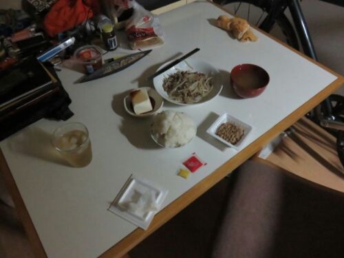 Shoji kindly set out a piece of floor for me and I felt very happy to be inside and sheltered. Then Shoji went into good host over drive and cooked me a tasty dinner and ran me a bath.