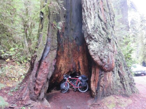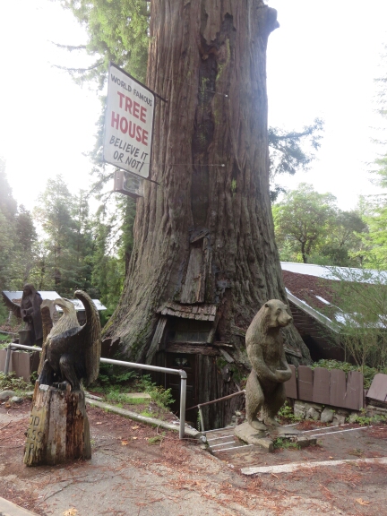 That day I would ride through more redwoods. It was clear that they were to some extent a bit of a tourist trap with places advertising drive thru trees and houses built from them too.
