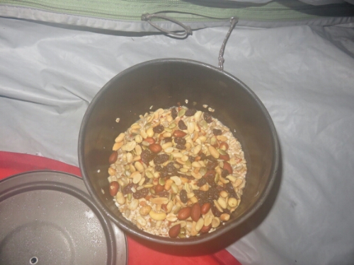 Followed by a great breakfast of cold oatmeal and trail mix.