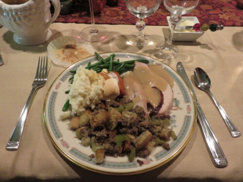 In the end I’m ashamed to say I had three helpings of main course and two of Mike’s sumptuous pumpkin pie. I could barely move for about an hour after we had eaten.