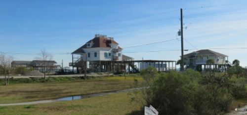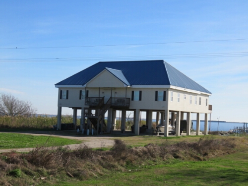 I managed to ride out of New Orleans without any trouble and found myself crossing a series of causeways between Lake Pontchartrain and Lake Borgne. This was very pretty and there were a lot of interesting houses in this area. Pretty much all of them will built up on tall stilts, I assume in case of flooding.