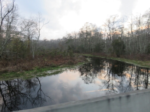 That evening just as it began to get dark I started to ride through the Bayou. The road was on reclaimed land and ran straight, raised up slightly above the swamp. As far as camping is concerned swamp sucks…